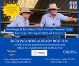 Armitage & Buckley present their 15th Annual Weaner Sale on Monday, 13th April 2026 at the Armidale Saleyards (New England Livestock Selling Complex), commencing at 2:00pm. This long-running annual event showcases 4,000 head of quality New England weaners, drawing vendors and buyers from across the renowned New England tablelands region of northern NSW. A key feature of the sale is that all stock is pre-weighed with weights displayed, giving buyers full confidence and transparency at time of purchase.