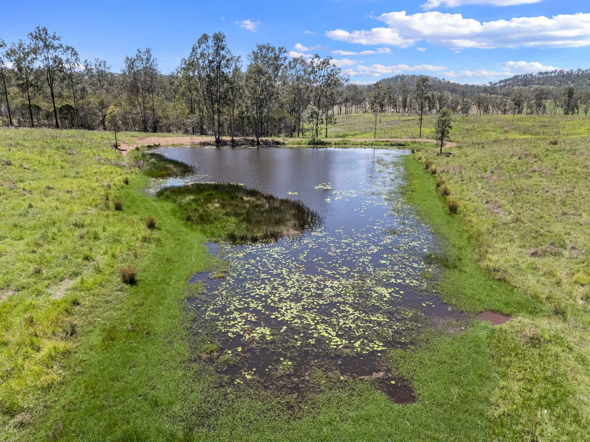 Across the combined acreage, the country transitions from heavily timbered sections to selectively cleared flats with productive pastures of Rhodes grass and Green Panic, along with stands of Ironbark and Spotted Gum.