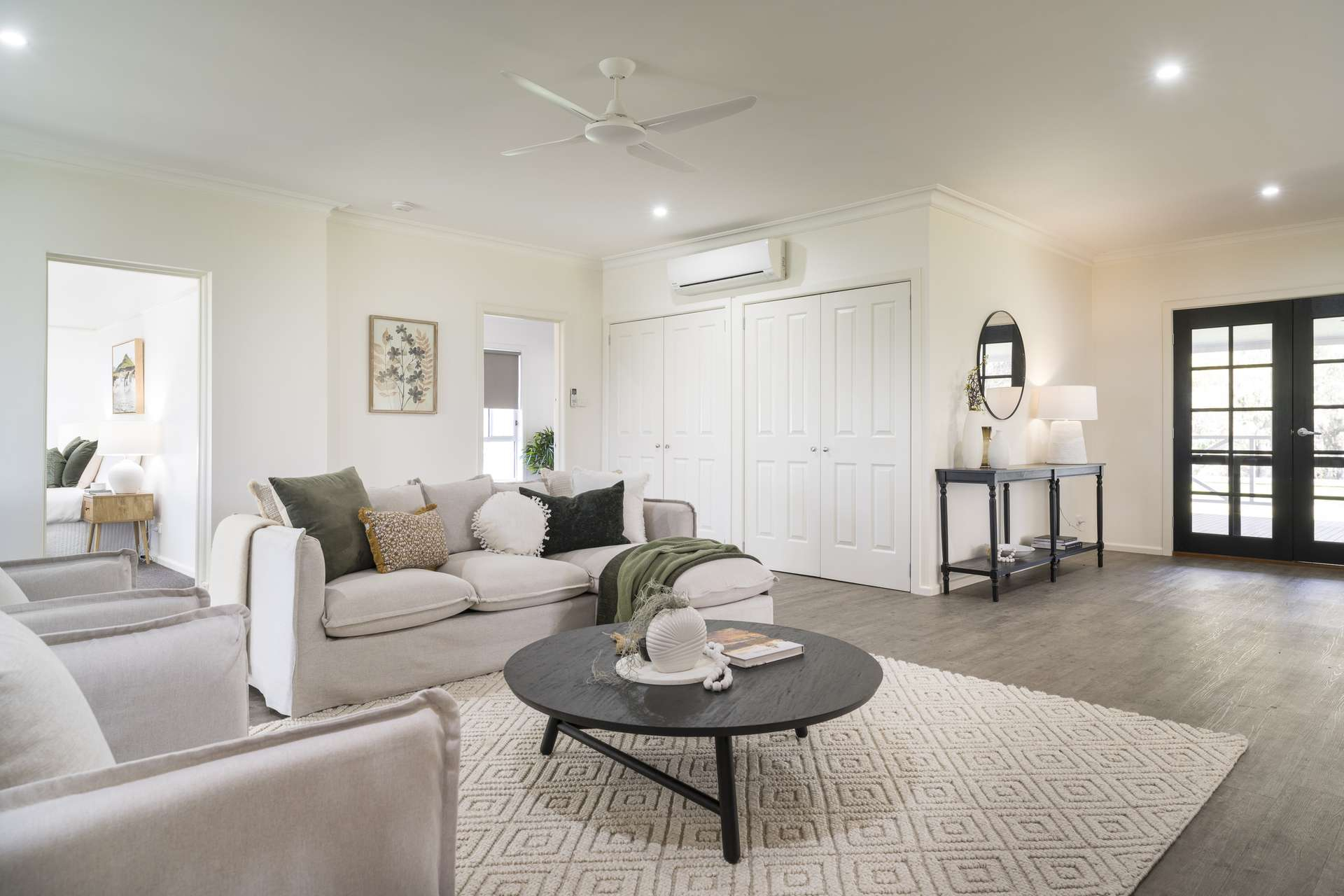 The home on this rural property for sale VIC offers a modern kitchen and multiple living areas