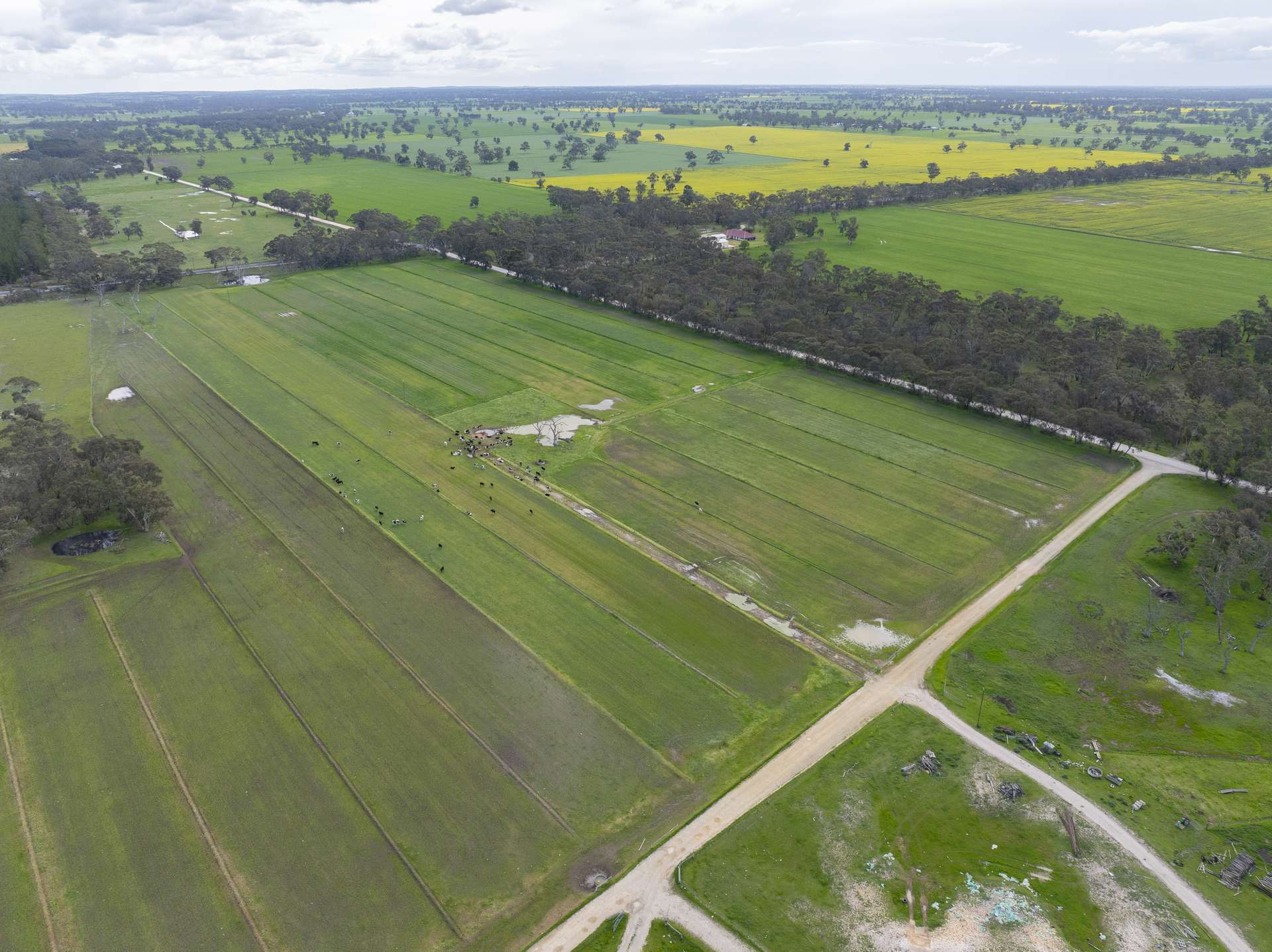 This holding features a mixture of flatter heavier grey-brown loams, some flat grey sandy loams over clay, to very gently rolling lighter loams to the east, along with some scrub, timber and shelter, the majority of which is in one block just east of the homestead section.