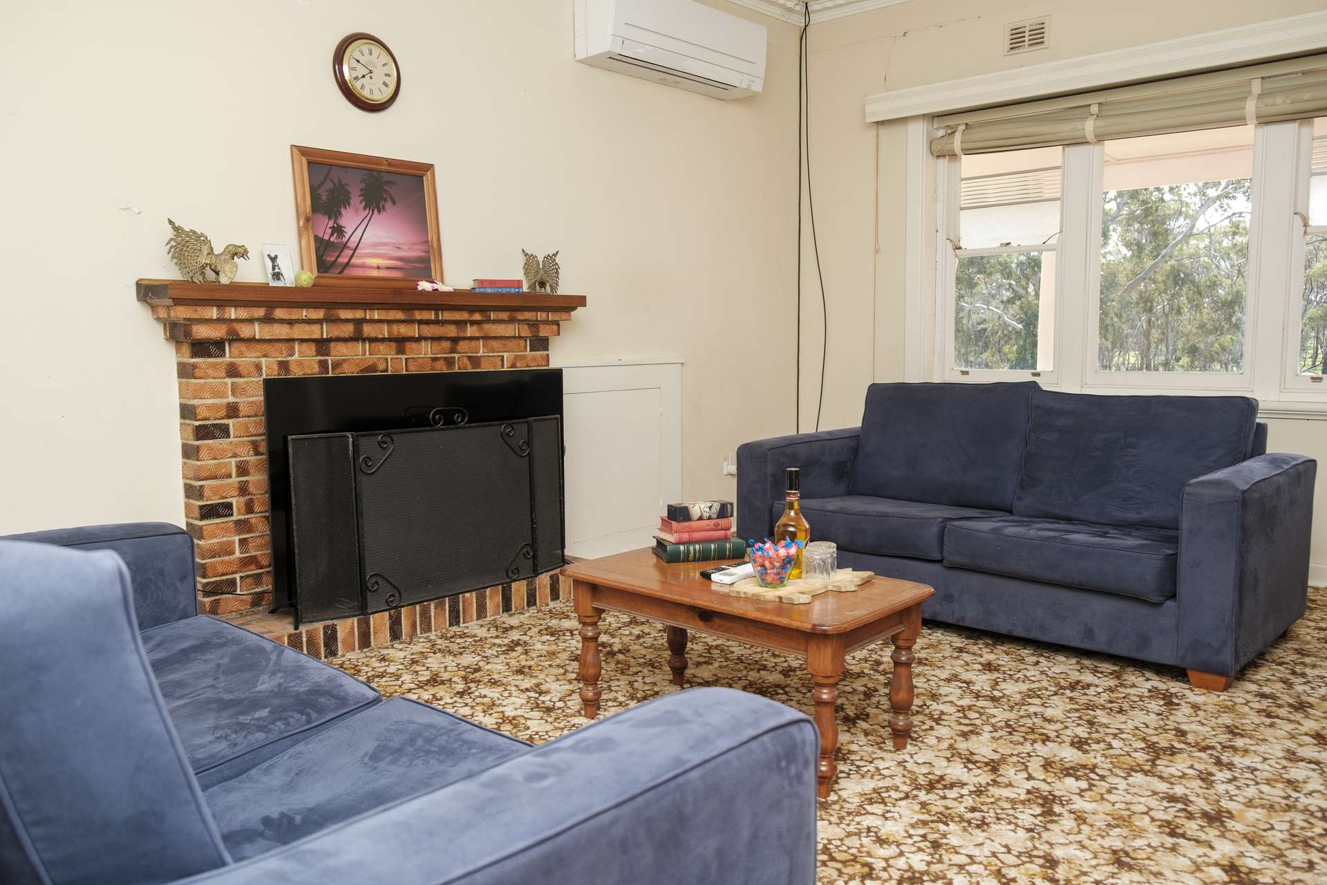 It features three bedrooms and an open-plan kitchen, lounge and dining area with free-standing wood fire and split-system air-conditioner. There is also an adjoining office, playroom, study/sewing room, laundry, second shower and toilet, rear paved area and double carport.