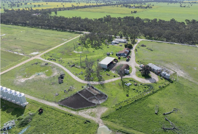 At 401.8 hectares, the homestead property, ‘Woodlee’, is the largest lot featuring 401.8 hectares of land, with flood and pivot irrigation supplied by 182 megalitres of water, plus two residences, a dairy (milking ceased March), modern silos, yards and sheds.