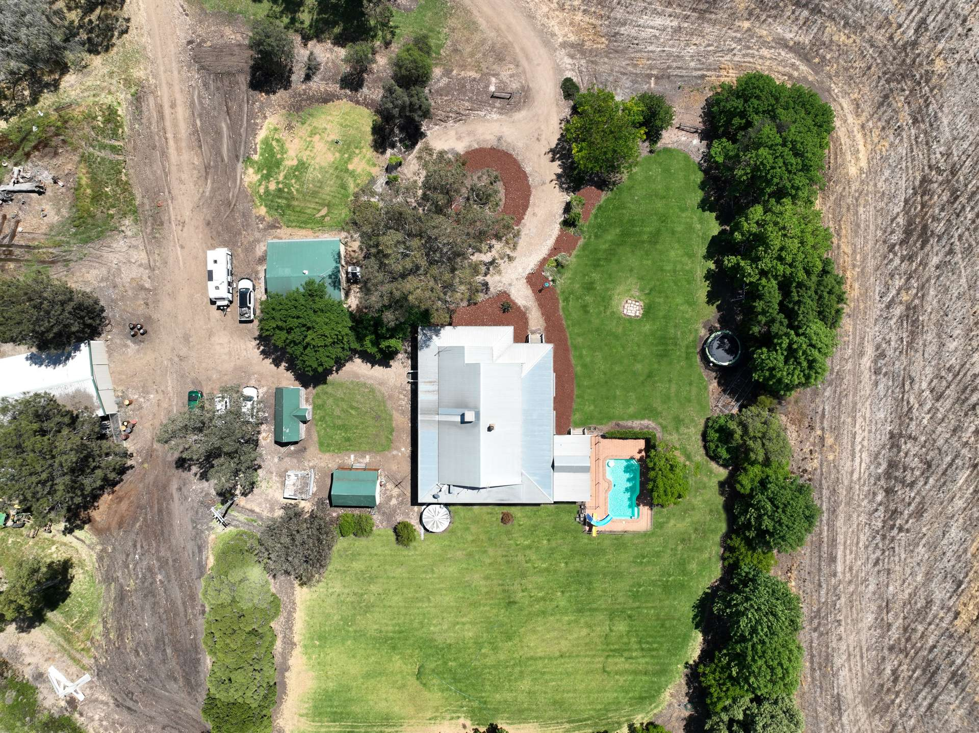 Complementing the main residence is a free-standing single-room studio that sits on the southern side of the home, along with a bird aviary; as well as a separate worker’s cottage offering three bedrooms, one bathroom and a garage. A three-bay garage with well-appointed farm office is located at the rear of the home while a second car/storage area is adjacent the office carpark.