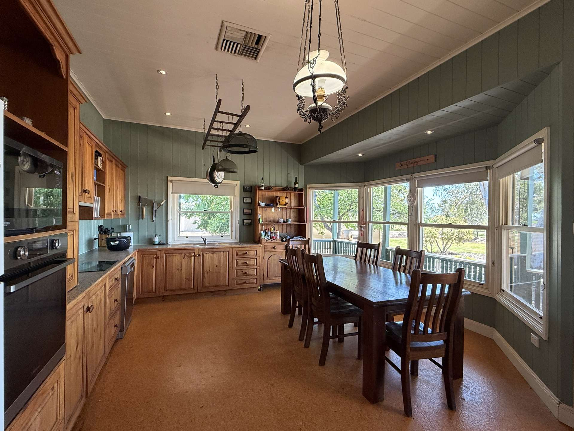 Cooled by both split-system an evaporative air-conditioners, with additional heating from a wood fire, the home also includes a kitchen/dining area with a large bay window and open-plan living area leading to an entertainment area overlooking the swimming pool set in an extensive garden area.