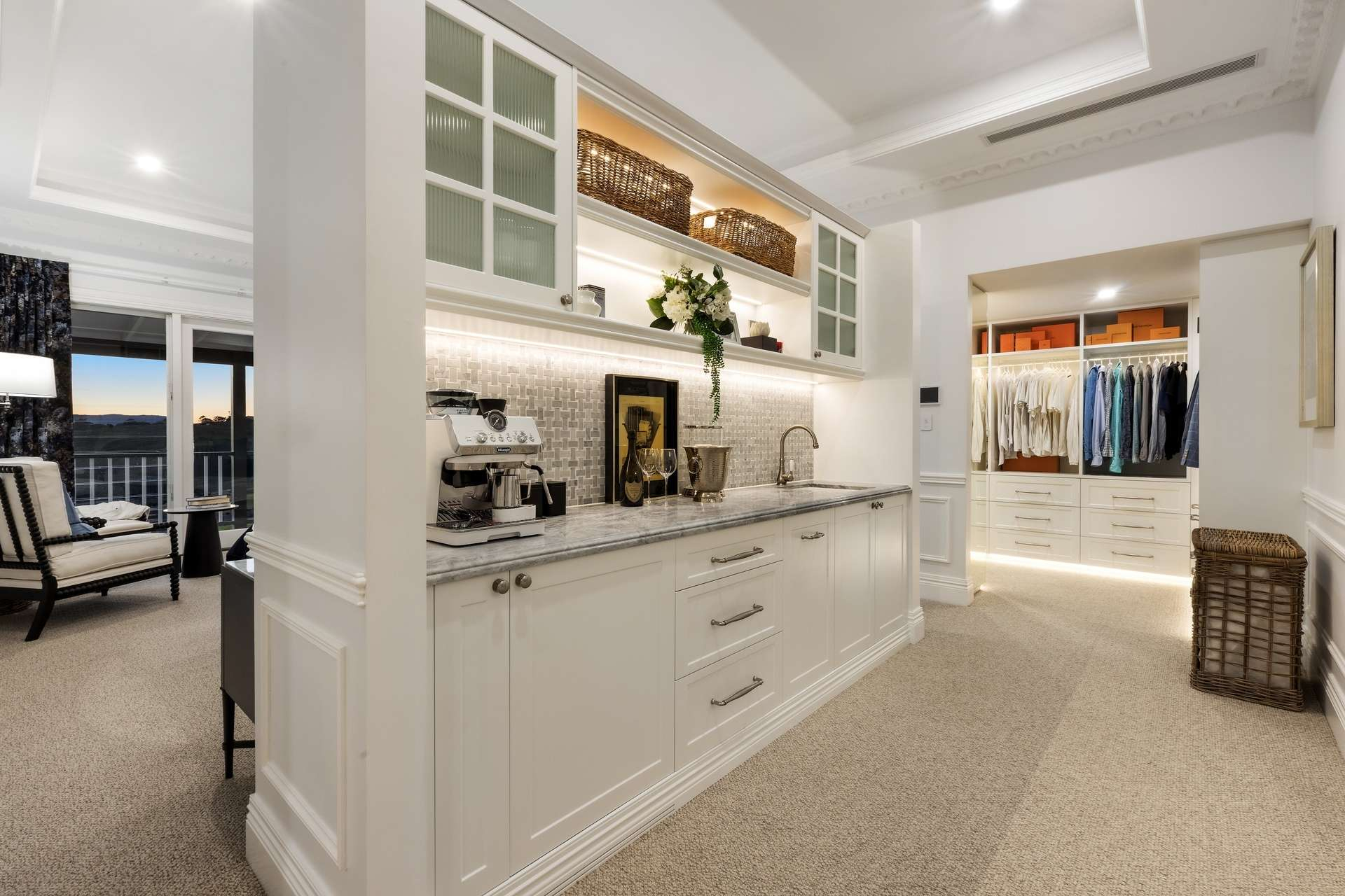 All bathrooms exude sophisticated luxury, with underfloor heating and timeless marble benchtops. Retreat to a choice of five bedrooms, including the sumptuous parent’s retreat with double his and hers robes, magnificent private ensuite, kitchenette and gas fireplace.