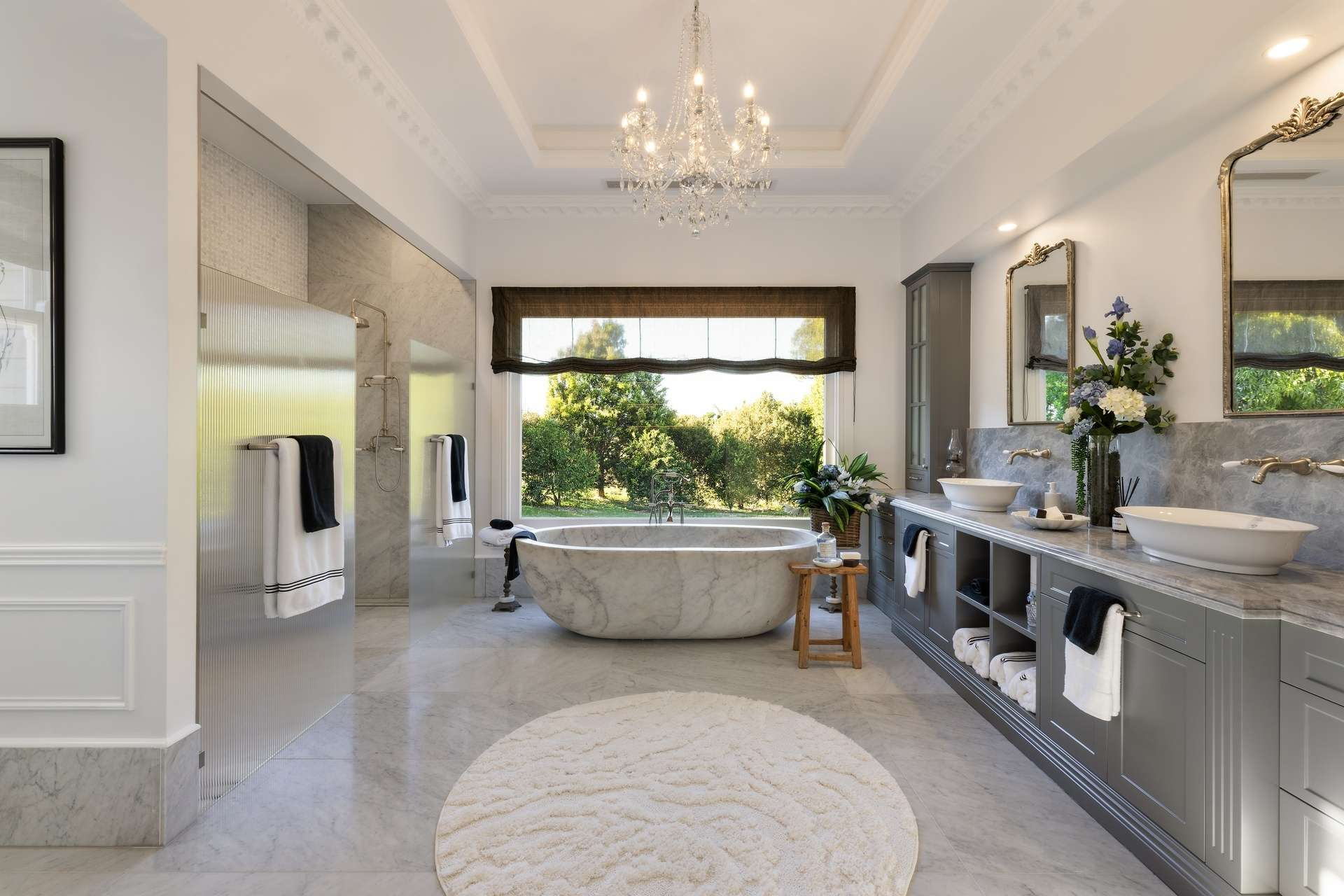 This rural property for sale boasts bathrooms exuding sophisticated luxury, with underfloor heating and marble benchtops