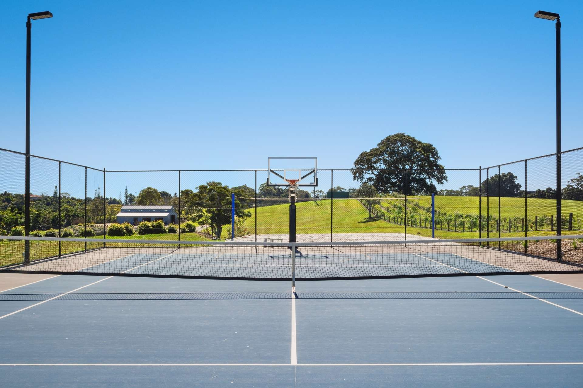 This rural property for sale Byron features a resort-style pool, tennis court, beach volleyball court and custom fire pit area
