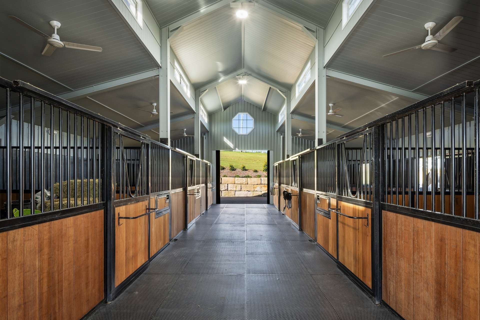 Horse enthusiasts will relish the extensive equestrian facilities, including a six-stall stable with tack room, wash bay, rubber flooring and fans.