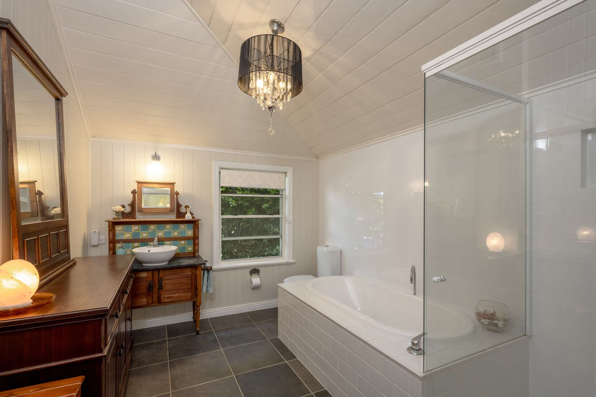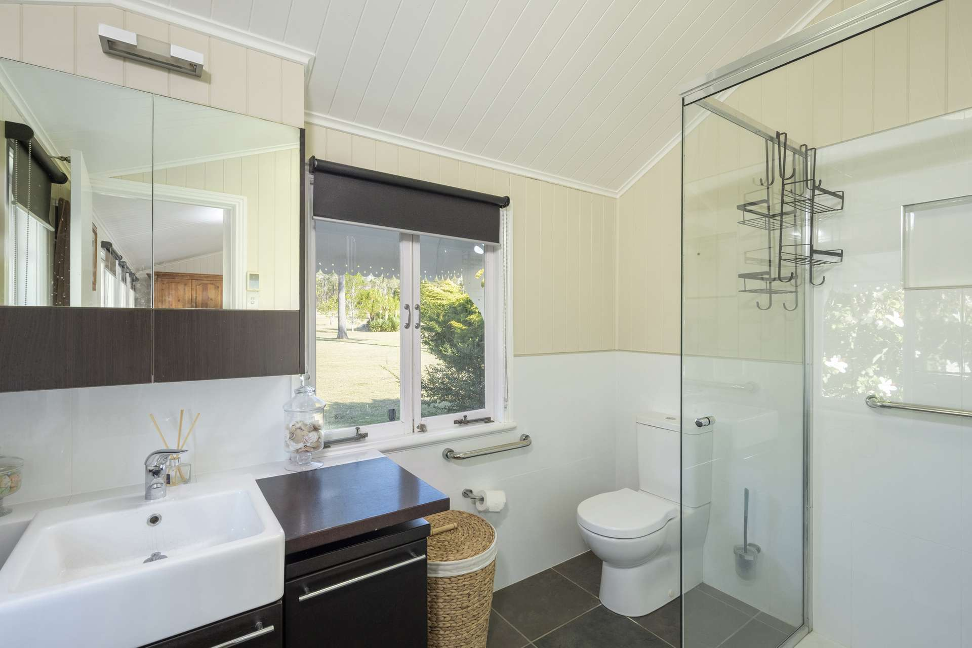 Set amidst established gardens, the renovated Queenslander has retained original features including high ceilings, fret work, VJ walls, wide hallway and polished timber floors, but been enhanced with modern functionality such as heated flooring, ducted air-conditioning, chef’s kitchen and 6.6kVA of solar.