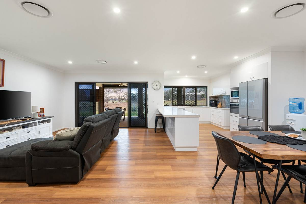 This rural lifestyle property for sale QLD features a gourmet kitchen and dining space flowing to the covered outdoor area