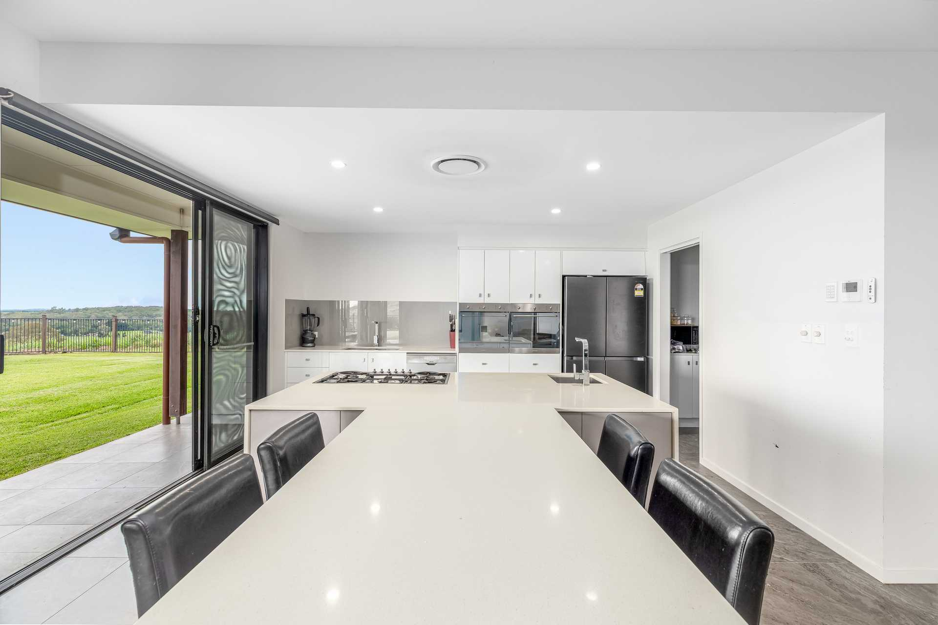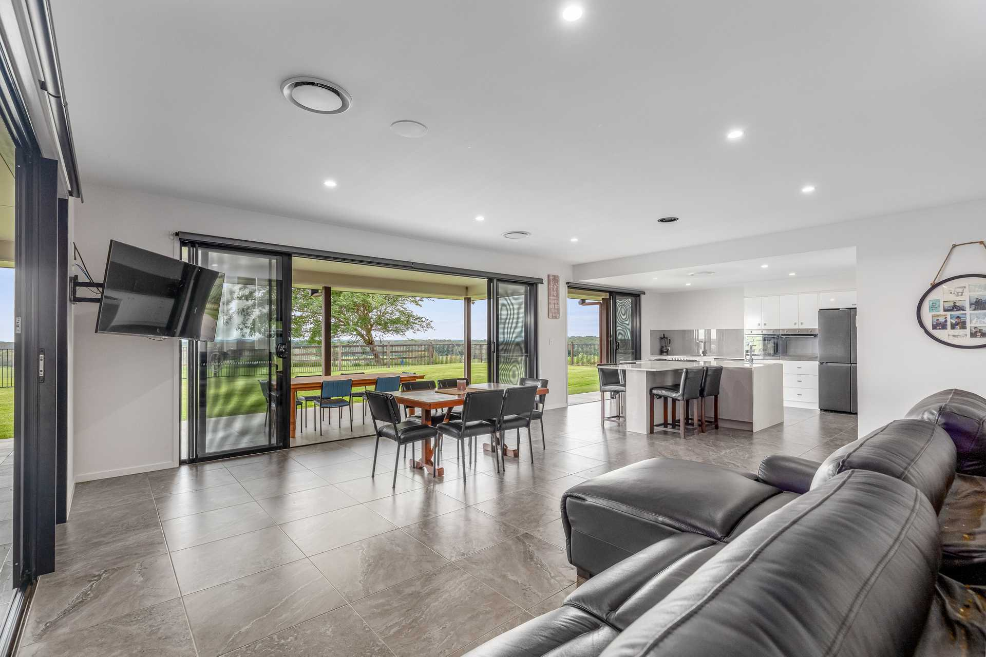 The open-plan living, dining and kitchen area forms the heart of the home on this rural property for sale QLD