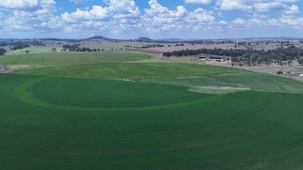 The irrigated land is serviced by five centre pivots, including 30 acres of lucerne and 270 acres of cereal grain crops to be harvested by the end of October, complemented by 590 acres of dryland cultivation area. The farm has a history of producing mung beans and soybeans and cereal, lucerne and forage crops.