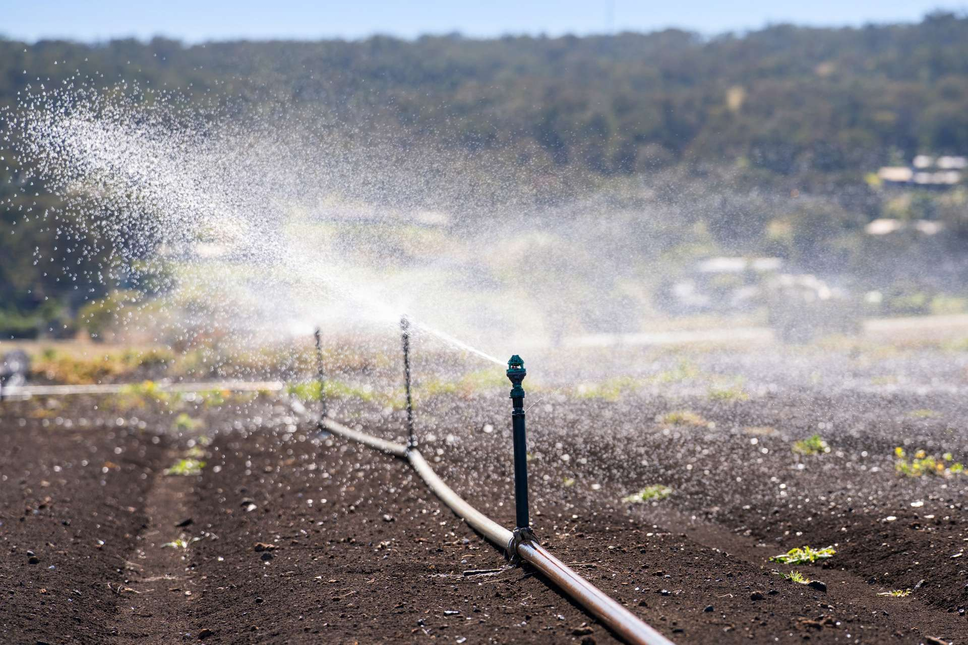 The dam pumps to top tanks and irrigation mains feeding into fully integrated nursery and field irrigation with fertiliser injectors and automated valve systems. A reverse osmosis treatment plant with PLC/VSD system delivers high-quality water across the nursery.