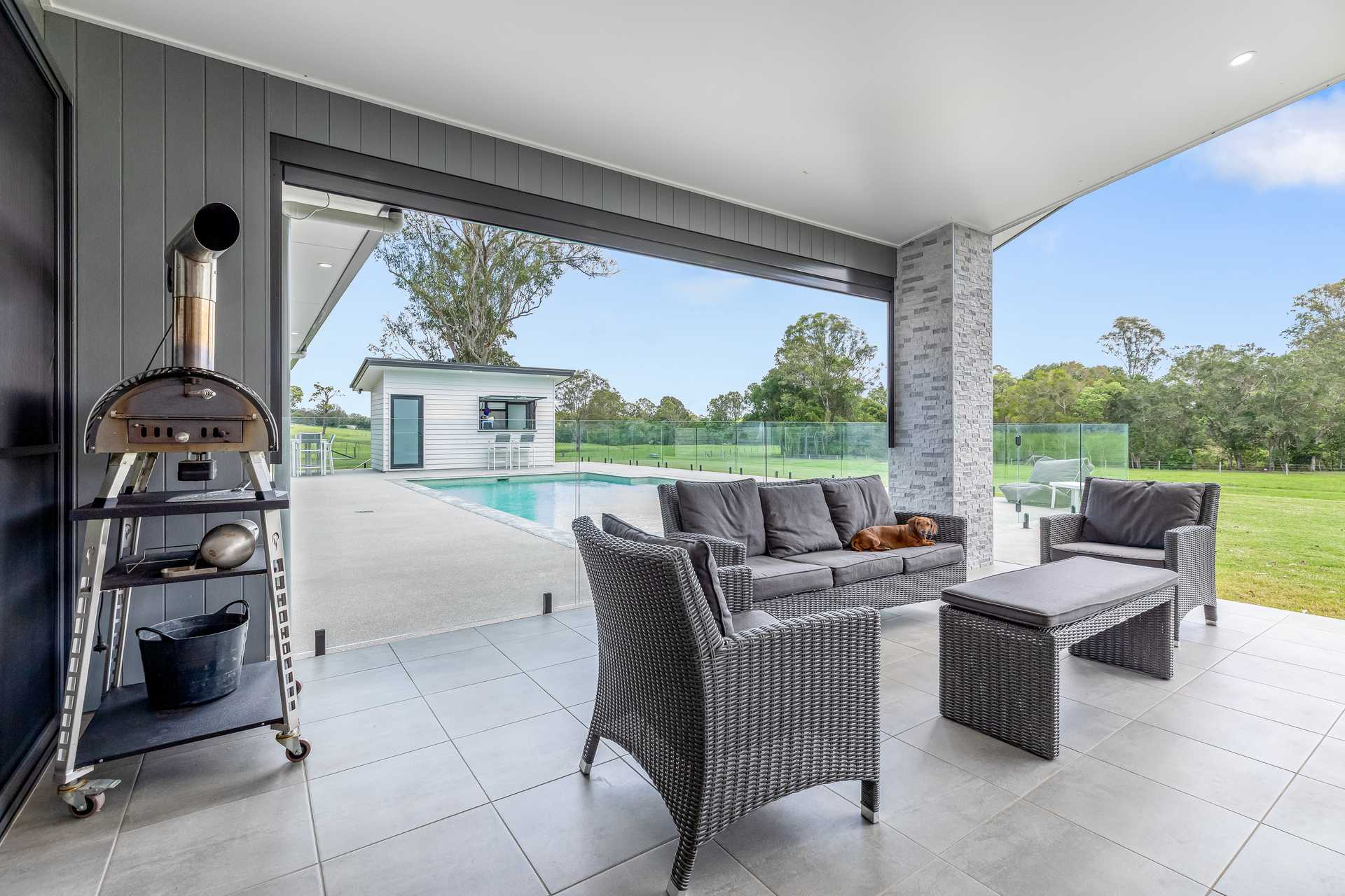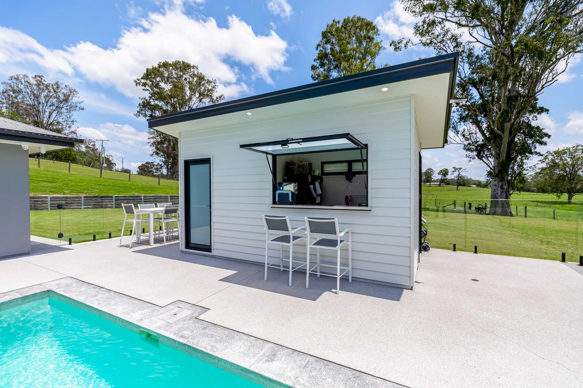 This acreage property for sale QLD includes a pool with its own pool house complete with bar area, shower, toilet and vanity