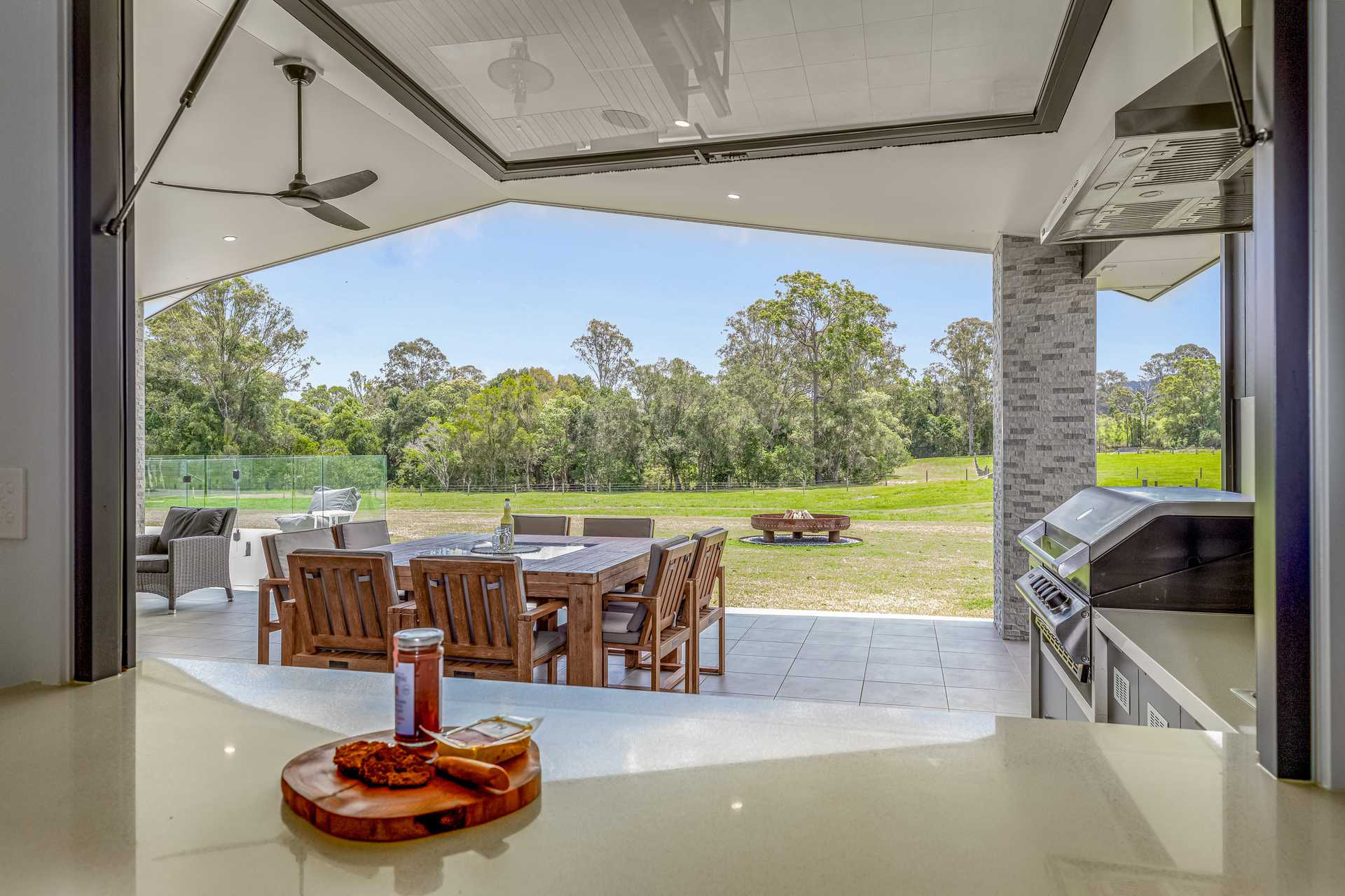 This acreage property for sale QLD offers a large rear entertainment patio with built-in BBQ, sink and spectacular views