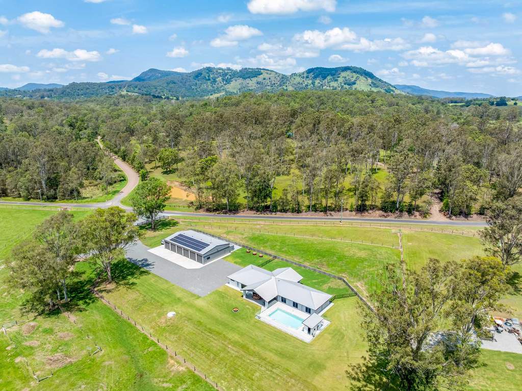 Located at Mothar Mountain just minutes from Gympie, this near-new estate – for sale with an asking price of $2.8 million – captures the essence of modern rural living at its absolute finest.
