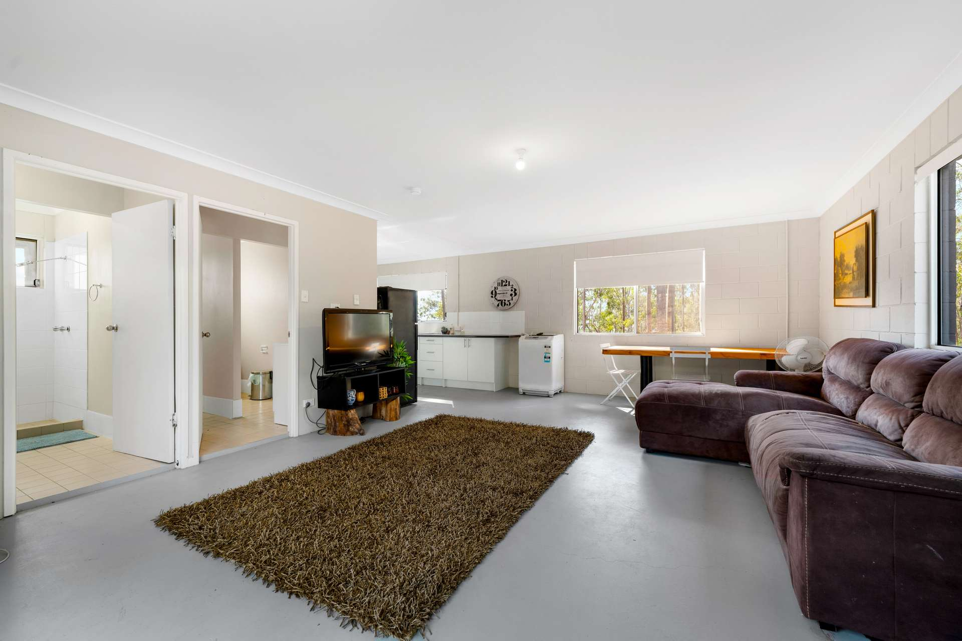 Additional accommodation includes a large shed with one-bedroom quarters, stage, undercover seating, kitchen, male/female toilets and shower – powered by solar panels plus inverter.