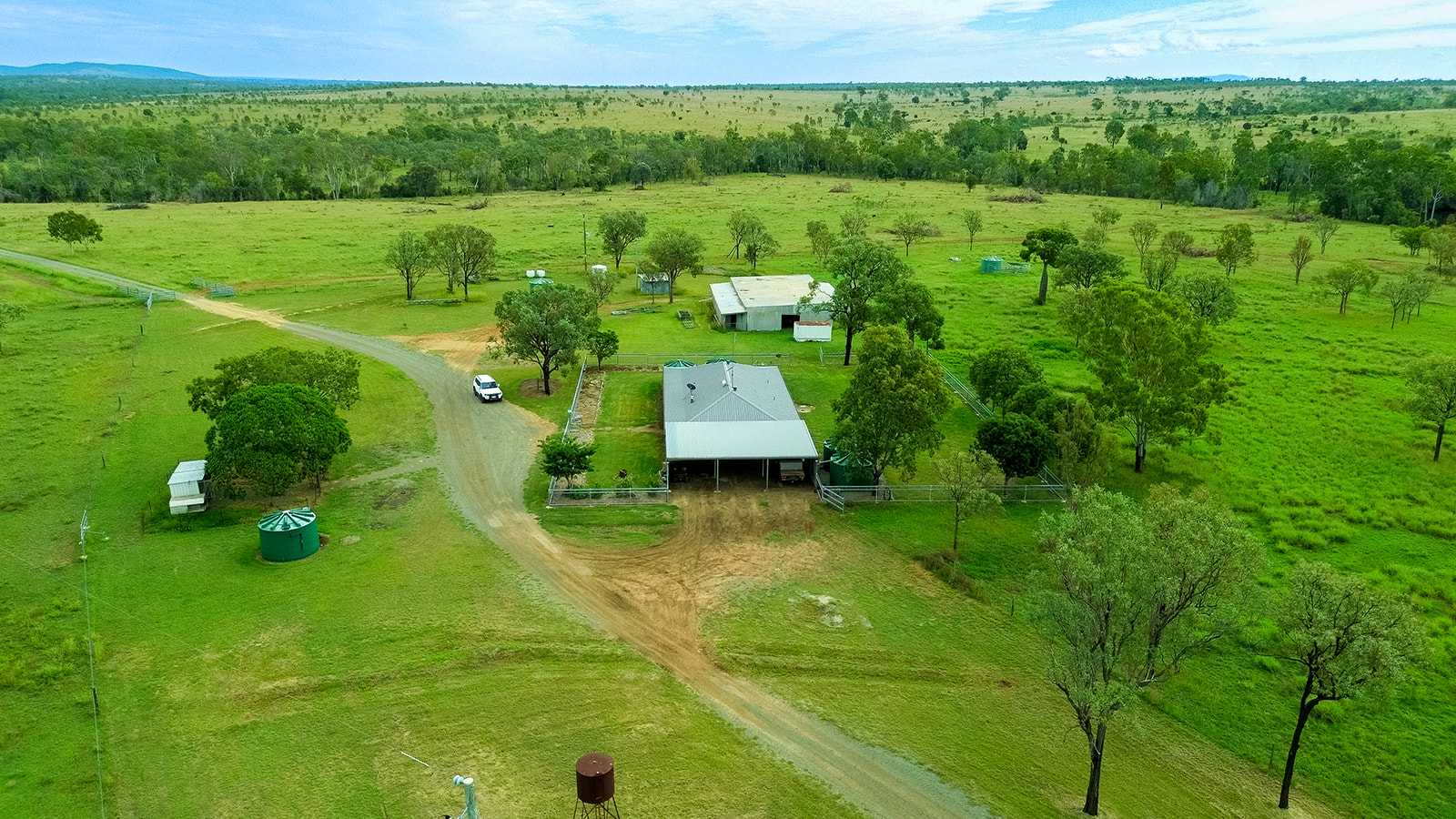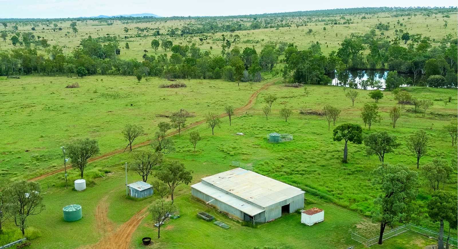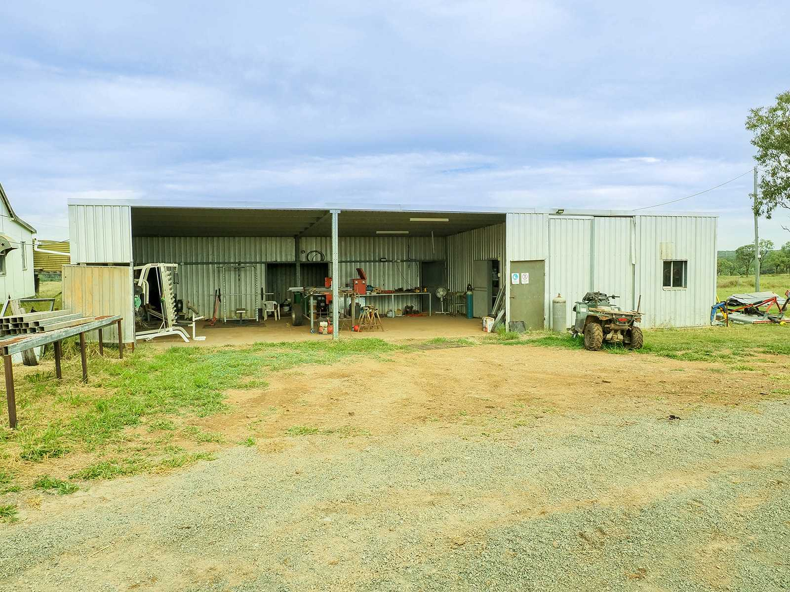This cattle property for sale QLD includes multiple sheds, including steel machinery/workshop shed and large hay shed