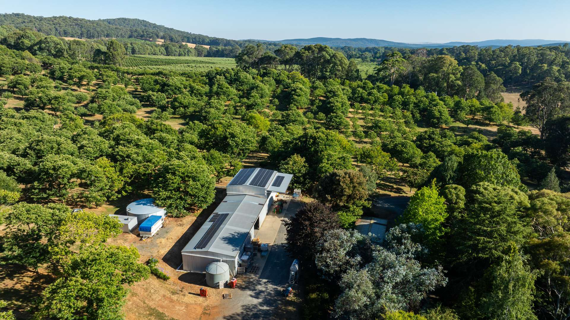 Supporting the orchard is extensive horticultural infrastructure including a 400-square-metre processing shed, cool room with 80-ton capacity, 26kW solar system, and additional shedding and operational improvements.