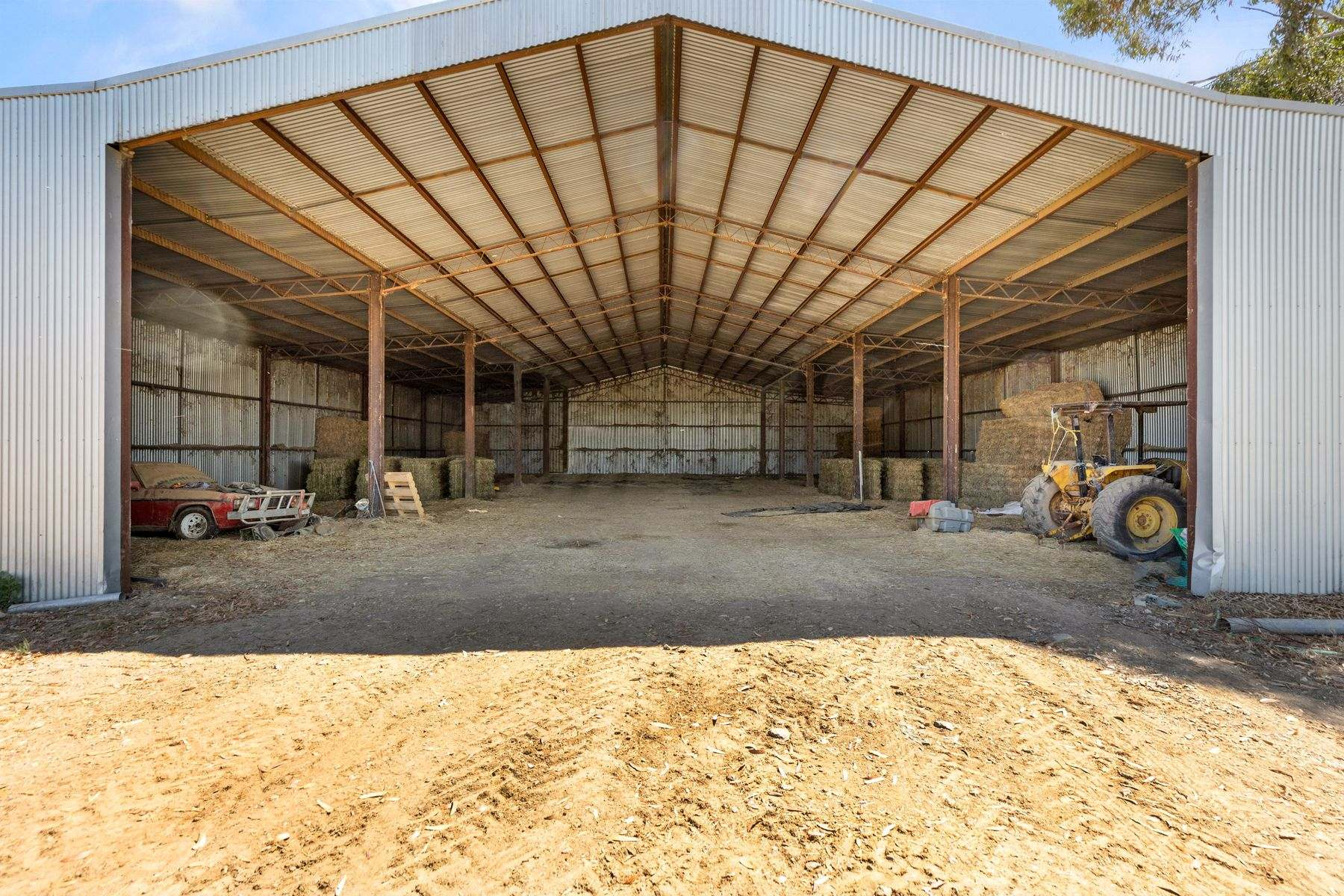 This rural property for sale VIC includes an open-fronted hay/machinery shed and an 18.3m x 8.8m hay shed with workshop