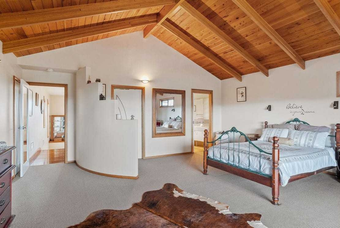 With sea vistas and extensive infrastructure, this is more than just a home; it is a fully realised rural lifestyle many only dream of! At the centre of the property is a bespoke residence featuring a turret-style entry and cathedral ceilings made of Macrocarpa and Tasmanian Oak that create a sense of scale and warmth.