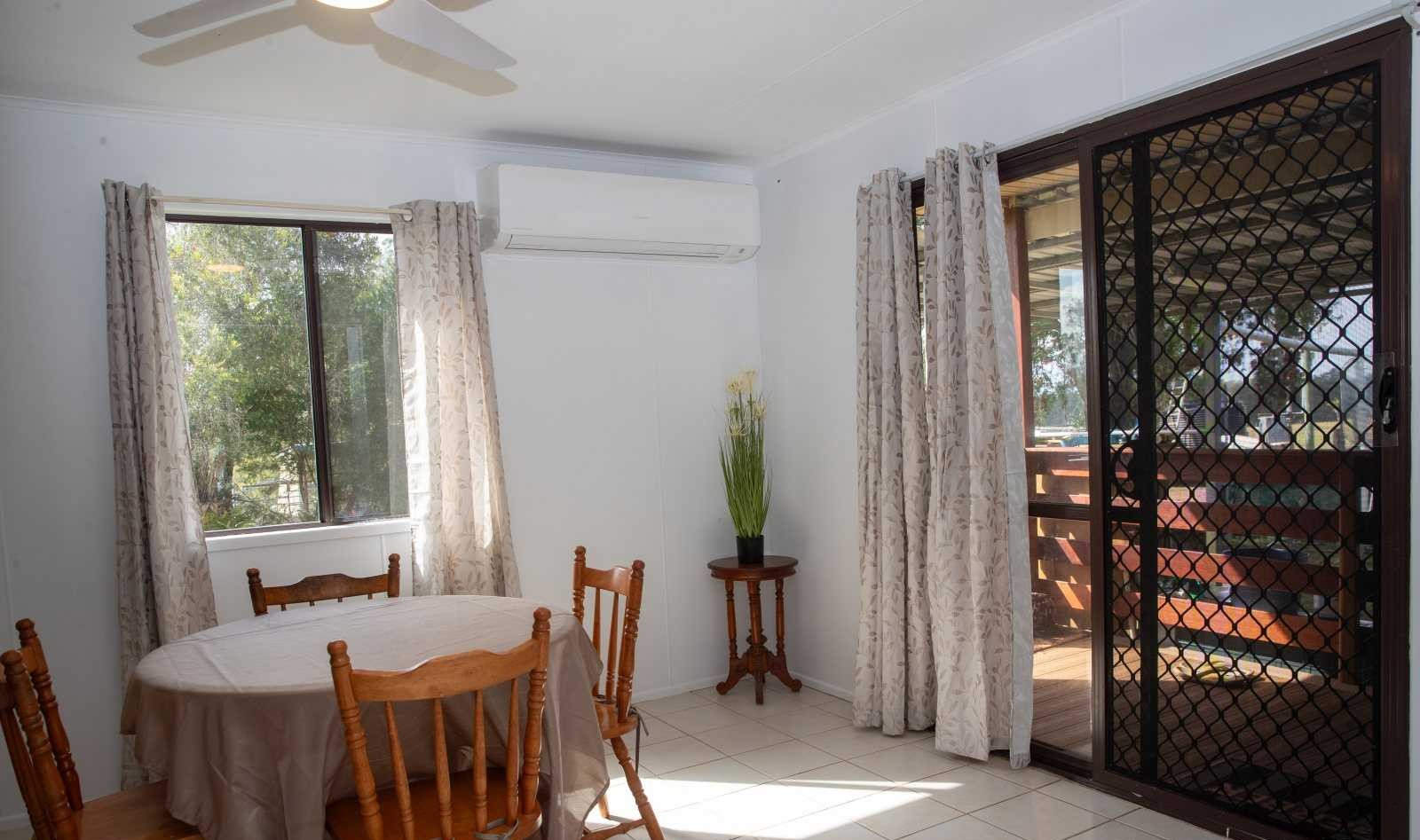 Contained in a fully fenced house yard with mango, citrus and banana trees, the residence features four bedrooms, three of which have built-ins, and three bathrooms, two internally plus a convenient external option. The layout of the bedrooms allows privacy, with one bedroom and a small bathroom on the western side of the house and the other three bedrooms sharing the main bathroom on the eastern side.