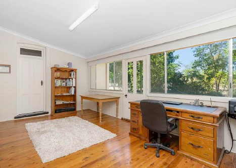 The main home on this rural property for sale NSW has an open-plan kitchen/dining area, sitting room, and office
