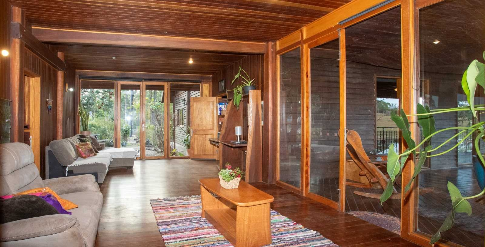 This rural lifestyle property for sale QLD is built from Spotted Gum trees felled on-property plus Huon sourced from TAS