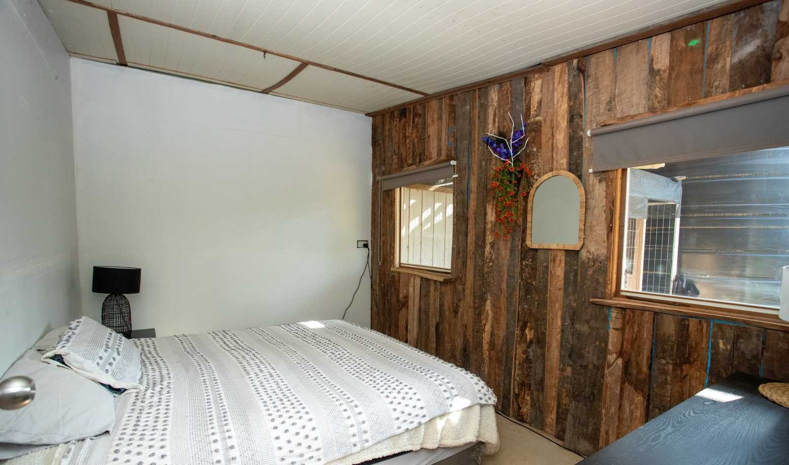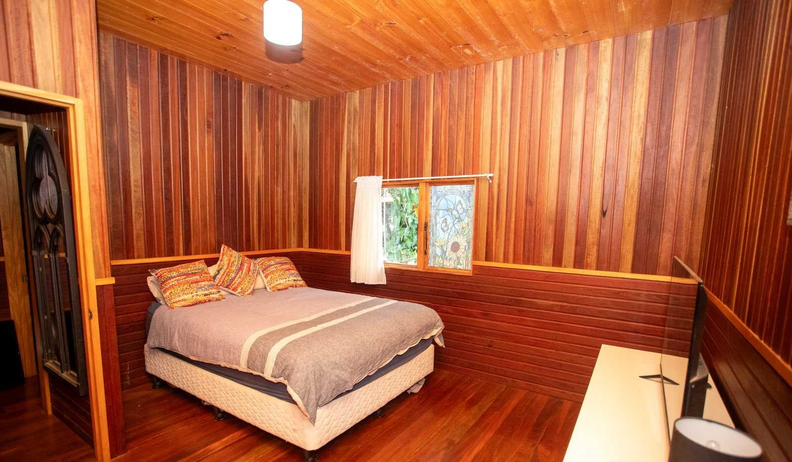 Upstairs is two bedrooms, including one huge bedroom overlooking the dam, plus the other with walk-in wardrobe and shared bathroom/toilet.