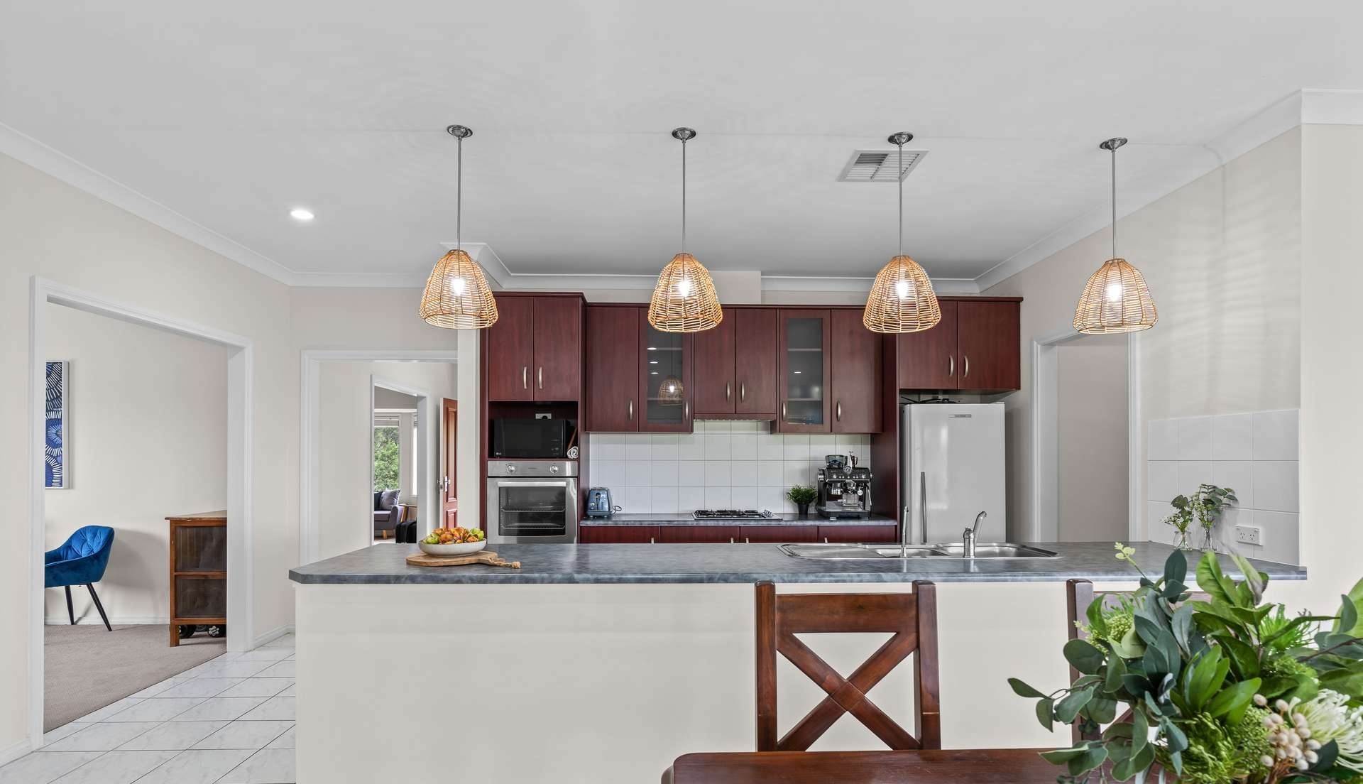 Intelligently sited to overlook the vineyard, the air-conditioned home features four bedrooms, including a master with walk-in wardrobe and ensuite with vanity, toilet and shower. The other three bedrooms all offer built-in robes.