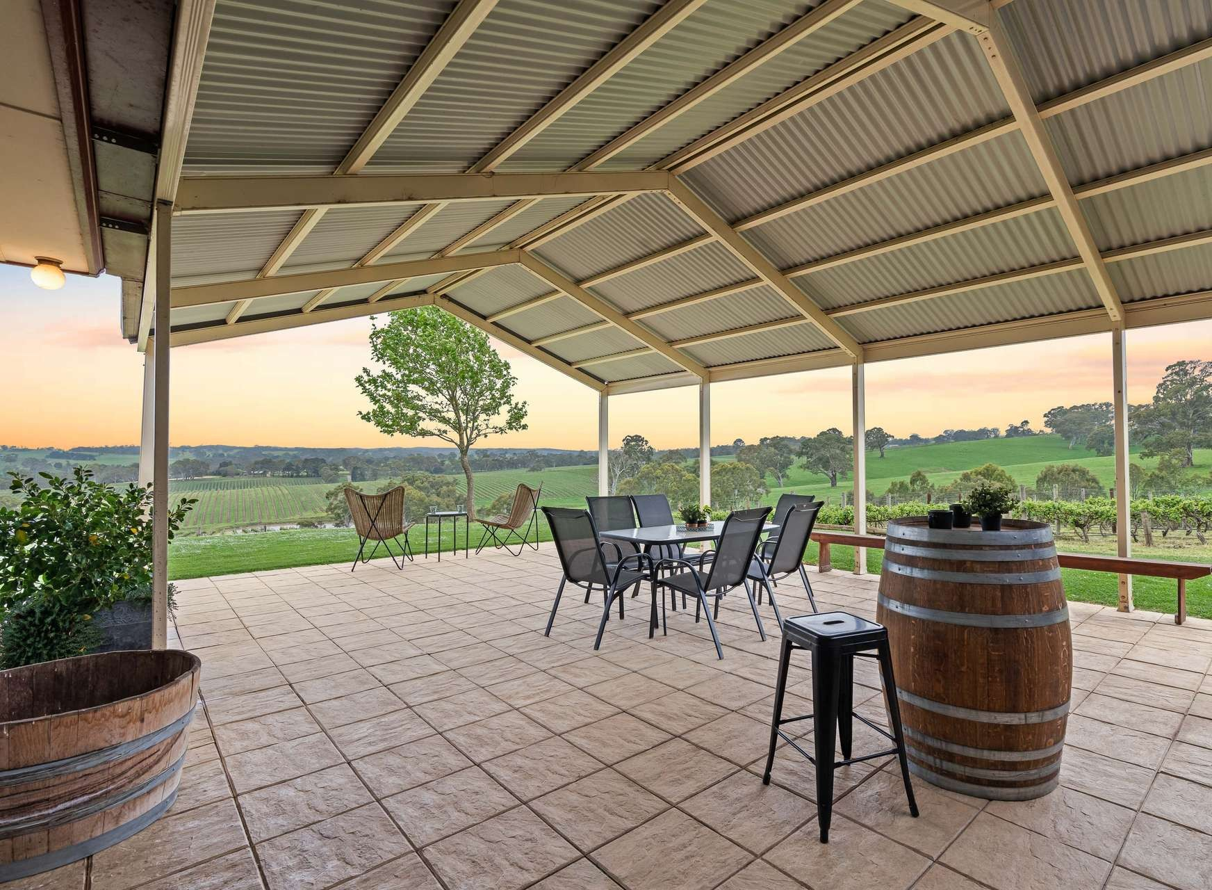 The home on this vineyard for sale SA includes a fully paved, undercover entertainment with a wonderful outlook