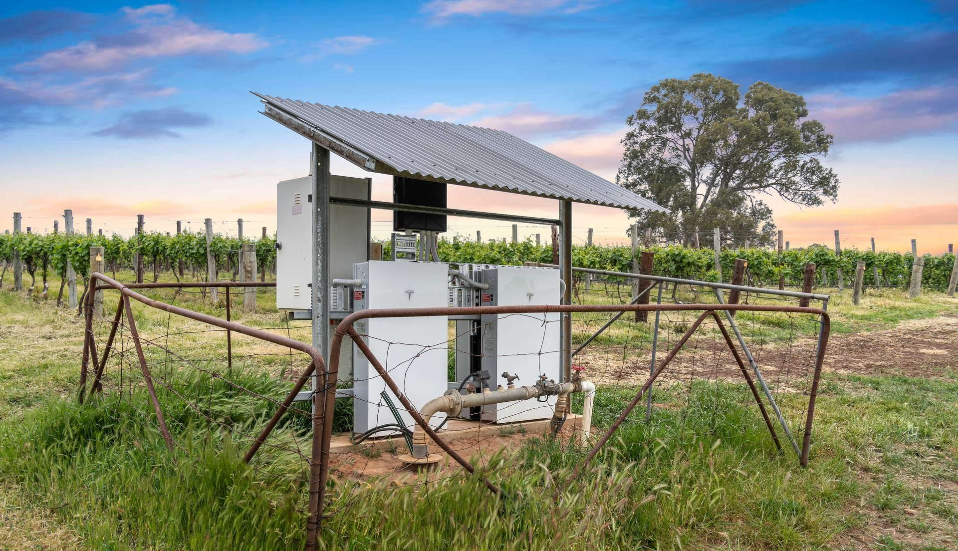 This vineyard for sale SA includes a large machinery shed which hosts a brand-new $108,000 solar-battery system