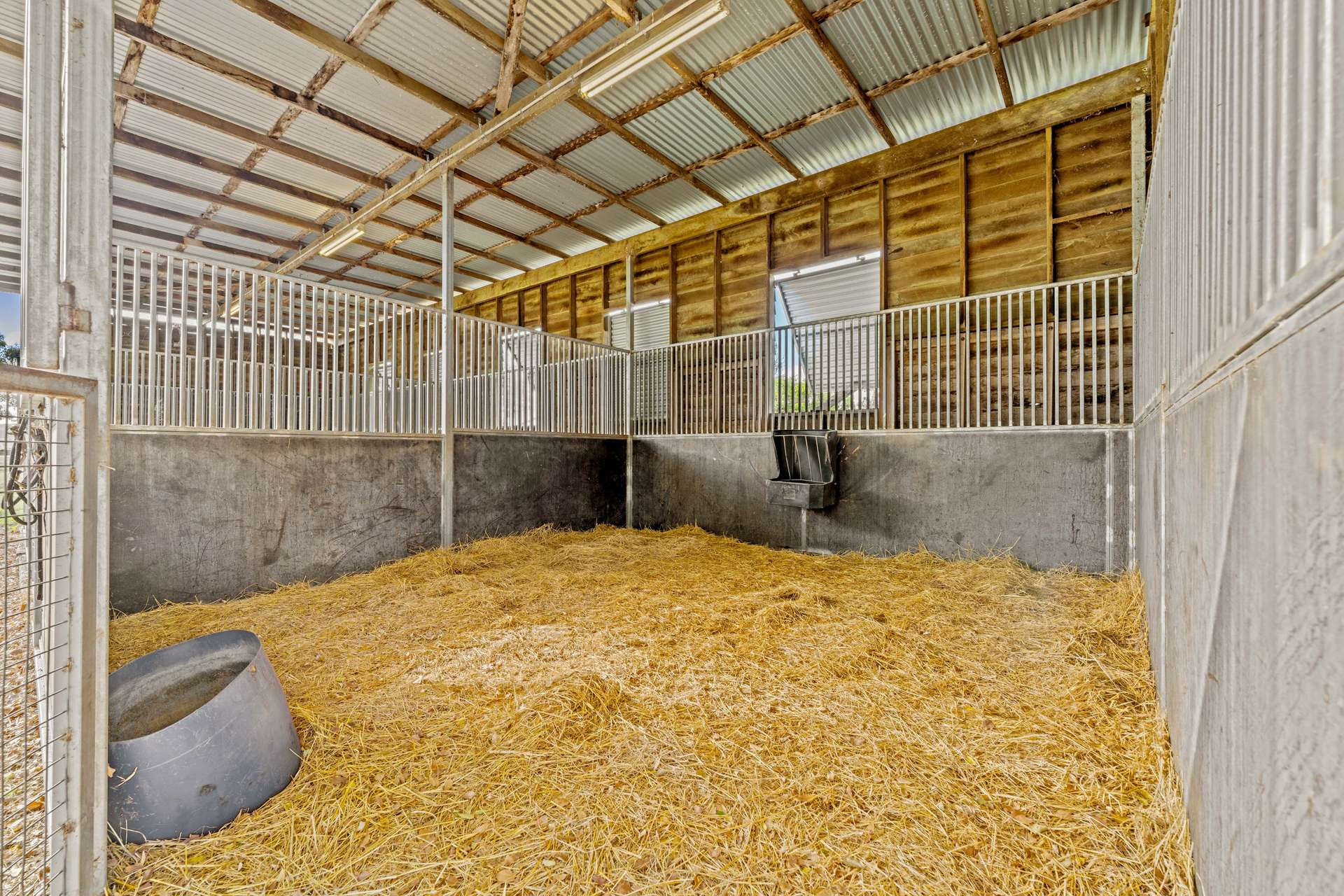 Shedding is extensive, headlined by a 7m x 29m powered shed featuring three-phase power and an 8kW solar system, and complemented by a large hay shed and chicken coop.